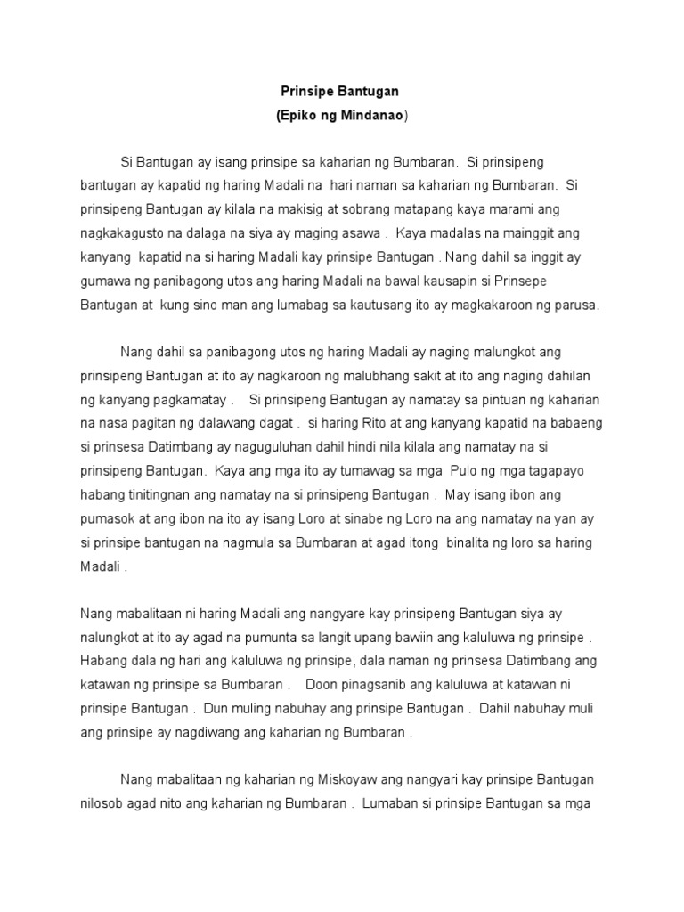 Epiko ni prinsipe bantugan buong kwento. Prinsipe Bantugan Epiko ng Mindanao Ikatlong Salaysay ng Darangan Si Prinsipe Bantugan ay kapatid ni Haring Madali ng Kaharian ng Bumbaran. Olaging Bukidnon Sandayo Zamboanga Tudbulul Tuwaang Ulahingan Ulod Prinsipe Bantugan Epiko ng Mindanao Ikatlong Salaysay ng Darangan Si Prinsipe Bantugan ay kapatid ni Haring Madali ng Kaharian ng Bumbaran.